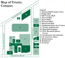 Other buildings on the Trinity Campus include the Communication Arts Center, which holds Convocation Hall, and the Trinity Theatre.[8]