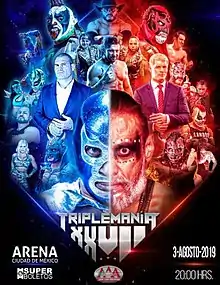 Triplemanía XXVII was a professional wrestling event produced and scripted by the Mexican professional wrestling promotion Lucha Libre AAA Worldwide (AAA). The event took place on August 3, 2019, at the Arena Ciudad de México in Mexico City, Mexico. It was the eighth consecutive Triplemanía to be held at the arena, and marked the 27th year in a row that AAA had held a Triplemanía show, and the 32nd overall show held under the Triplemanía banner since 1993. The annual Triplemanía show is AAA's biggest event of the year, serving as the culmination of major storylines in what has been described as AAA's version of WrestleMania or their Super Bowl.