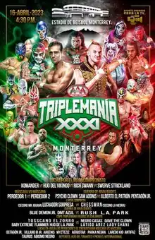Triplemanía XXXI was a three-day professional wrestling pay-per-view (PPV) event promoted and produced by the Mexican professional wrestling promotion Lucha Libre AAA Worldwide (AAA or Triple A). The event was held on April 16, July 15, and August 12, 2023. The April 16 event took place at Mobil Super Stadium in Monterrey, the July 15 event took place at Chevron Stadium in Tijuana, and the August 12 event took place at Mexico City Arena in Mexico City. It marked the 31st year in a row that AAA has held a Triplemanía show and comprises the 40th, 41st, and 42nd overall shows promoted under the Triplemanía banner since 1993. The annual Triplemanía show is AAA's biggest event of the year, serving as the culmination of major storylines in what has been described as AAA's version of WrestleMania or their Super Bowl event. The event aired on PPV via the FITE service.[1]