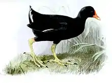 The Tristan moorhen (Gallinula nesiotis) is an extinct species of flightless rail endemic to the South Atlantic island of Tristan da Cunha.[2] It was very similar to the Gough moorhen of Gough Island, located 395 miles (636 km) to the southeast.