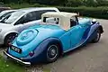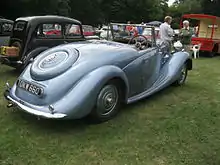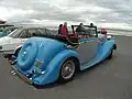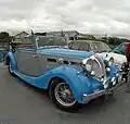 This is an open version of the 14/65, announced 29 March 1938,[11] with seating for three people on a single bench seat and "two additional outside seats in the tail, reminiscent of the dickey seat that was at one time common"[10] for two more people behind. The hood folded completely into the body to give the appearance of an open sports car. The car was announced with the 1,767 cc (107.8 cu in) engine with twin SU carburettors.[11] A two-tone (coffee and cream) version of this model featured in the 1945 film version of Noël Coward's Blithe Spirit, directed by David Lean. It was driven by Rex Harrison.