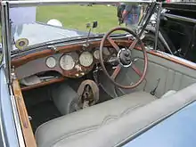 Triumph had been moving progressively upmarket during the 1930s, and the 1938 Dolomites were very well equipped, with winding windows in the doors, automatic chassis lubrication, a leather-bound steering wheel adjustable for rake and reach, dual hydraulic brake circuits, twin trumpet horns, and spot lamps included in the price.[10] There was even a tray of fitted tools slotted beneath the driver's seat cushion, and for an extra 18 guineas buyers could specify a radio.[10]