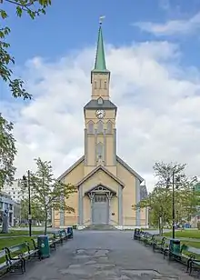 ![]() View of Tromsø Cathedral as seen from Kirkeparken | |
