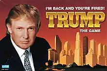 Trump: The Game is a board game named after Donald Trump. Milton Bradley Company initially released the game in 1989, but it sold poorly, with only 800,000 copies sold out of an expected two million. Parker Brothers re-released Trump: The Game in 2004 following the success of Trump's reality television series, The Apprentice, from earlier that year. Trump: The Game received poor reviews from critics and the public audience.