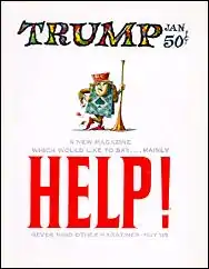 Trump was a glossy magazine of satire and humor, mostly in the forms of comics features and short stories. It was edited by Harvey Kurtzman and published by Hugh Hefner, with only two issues produced in 1957. The first issue appeared in January 1957.[1] The magazine's mascot was a trumpeter herald in the style of John Tenniel's Alice in Wonderland illustrations. Kurtzman began work on Trump shortly after leaving Mad following a break with its publisher William M. Gaines. Mad also lost two of its top cartoonists in the dispute's aftermath, when Will Elder and Jack Davis chose to follow Kurtzman. Wally Wood was also recruited for the Trump team in the form of an either-or option, but he chose to stay at Mad. Other notable artists, including Al Jaffee and Arnold Roth, appeared in Trump.