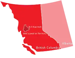 ![]() Location of Tsʼil Kaz Koh in traditional Wetʼsuwetʼen territory within British Columbia, Canada | |