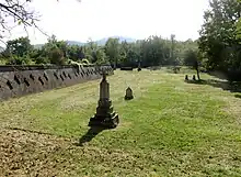 There are three cemeteries from the First World War in Tublje pri Komnu. They lie northwest of the village, close to Brje pri Komnu. The first cemetery lies next to the main road and contains the remains of about 2,300 soldiers.[4] The second cemetery lies about 200 metres (660 ft) west of the first and contains the remains of about 1,500 soldiers.[5] The third cemetery lies about 60 metres (200 ft) southwest of the second one.[6] A fourth cemetery is located northeast of these in neighboring Brje pri Komnu.[7]