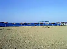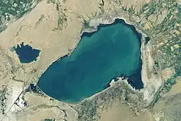The water in it is partly mineralized, resembling saline waters.[2][3] It underwent reconstruction in 1977. Its total volume is 1.2 km3 (although some sources state a general volume of 0.8 km3). The surface area of the water is 210 km2, with an average depth of 4.8 meters. Its depth reaches 4 meters, and its maximum capacity is 46.0 m3/s. Through the intermediate canal, it collects surplus waters of the Zarafshan River and is replenished from the Amu-Bukhara canal that links to the Amu Darya River.[2] The Tudakul reservoir is a habitat for species listed in the Uzbekistan Red Book, including waterfowl, aquatic animals, large-scale fish, turtles, and gulls.[4] In 1960, the Tudakul Fish Hatchery was established on an area of 30 thousand hectares within the reservoir's foundation.[2] In 2020, a new resort, the "Silk Road Family Repost" touristic beach zone, was established on the shore of the Tudakul Quyimozor water reservoir. A few weeks after this event, the Tudakul Quyimozor reservoir was registered under the Ramsar Convention.[5][6][4]