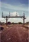 The original two-road locomotive shed (code number 75F) was capable of accommodating six engines and situated to the south of the station. It was opened in 1866[8] and replaced in 1891 by a larger four-road shed located to the north-west of the station.[9] Following bomb damage on 20 November 1940 during the Second World War, the slate roof of the engine shed was replaced with corrugated asbestos.[10] It was closed to steam locos in June 1965 but the tracks were used for storage of engineers rolling stock until the late 1970s when they were removed.