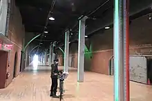 The club featured unisex bathrooms, which were the converted locker rooms formerly used by the freight terminal's workers. They had modern stalls with partitions and doors for privacy, extant rows of old lockers attached to the wall, as well as marks where the former shower stalls had been removed. In the late 1980s, Club Kids, including Michael Alig, Amanda Lepore, and RuPaul, often gathered in the V.I.P. room in the basement.[11]