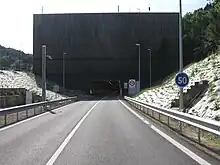 The Tunnel Maurice-Lemaire, commonly known as the Tunnel de Sainte-Marie-aux-Mines is a former rail tunnel adapted to permit road traffic to drive between Sainte-Marie-aux-Mines (Haut-Rhin, Alsace) and Saint-Dié (Vosges, Lorraine), France, without needing to drive over the mountain pass. The tunnel is 6,950 m (7,600 yd) long, which till 2011 made it the longest road tunnel wholly within France. The tunnel owes its current name to Maurice Lemaire, a former Director General of the SNCF and a senior politician nationally and regionally during the third quarter of the twentieth century. Lemaire promoted the tunnel's modernisation.