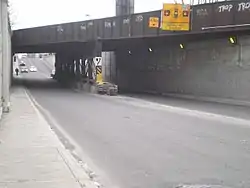 "Tunnel de la mort" (Tunnel of Death) is the informal name given, in Montreal, to the notoriously dangerous intersection of Rue d'Iberville and Boulevard Saint-Joseph, at the border of the Rosemont–La Petite-Patrie and Plateau-Mont-Royal boroughs. The intersection owes this name to the dangerously poor visibility caused by the three railway overpasses immediately to the north, east, and west of it,[fn 1] and by concrete retaining walls on all four corners. More than 250 serious accidents were reported at that intersection between 1992 and 2002.[1][2]