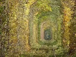 The Tunnel of Love (Ukrainian: Туне́ль Коха́ння, Tunel Kokhannya) is a section of industrial railway located near Klevan, Ukraine, that links it with Orzhiv. It is a railway surrounded by green arches[1] and is three to five kilometers in length. It is known for being a favorite place for couples to take walks since trains pass thrice a day.[2]