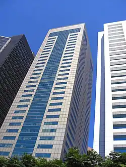 The Tuntex Tower (Chinese: 敦南東帝士大樓) is a skyscraper office building in Daan District, Taipei, Taiwan. The height of building is 143 m (469 ft), with a floor area of 49,884.86 m2 (536,956.2 sq ft), and it comprises 38 floors above ground, as well as four basement levels.[1] The tower was completed in 1990 and was designed by TMA Architects & Associates. The exterior glass façade of the building forms a pattern to represent the first letter "T" of the Tuntex Group.[2]