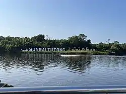 Tutong Town is one of the largest human settlements in the district in which the river passes through,[2] and it has a small commercial jetty used by locals.[3] At the mouth of the river, it links up with Sungai Danau which also has its own former jetty in Kampong Danau.[4] Several more kampongs such as Lubok Pulau, Nyanyag, Tanjong Maya, Layong, and Rambai also lie upstream of the river.