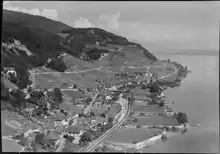 For most of the history of Twann, the main transportation mode was by ship. The first road that connected Twann to Biel was built in 1835-38. About twenty years later it was followed by the Biel-Neuchatel railway line in 1858-60. The expansion of the railway and the highway, in 1969-78, separated the village completely from the lake. While viticulture is still important to the village, tourism, a shipyard and a construction company are also important parts of the local economy. In 1977-80 a vacation village was built on the Twannberg. It was sold and converted into a hotel in 2009.[4]
