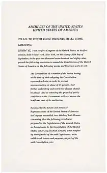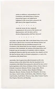 The Twenty-seventh Amendment's certification, National Archives