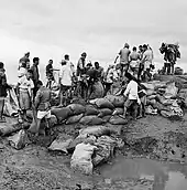 ![]() Certain air force personnel carry relief supplies onto a plane after the typhoon |