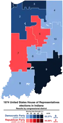 Summary of the November 5, 1974, United States House of Representatives election results[3]