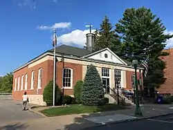 US Post Office-Boonville is a historic post office building located at Boonville in Oneida County, New York, United States. It was designed and built in 1937, and is one of a number of post offices in New York State designed by the Office of the Supervising Architect of the Treasury Department, Louis A. Simon. It is a one-story, five bay building with a poured concrete foundation and brick facades in the Colonial Revival style. It features a hipped roof surmounted by an octagonal cupola with metal window tracery and an iron weathervane. The interior features a mural painted by the McCullough sisters of New York City depicting a 19th-century scene on the Black River Canal. It is a contributing structure within the Boonville Historic District.[2]
