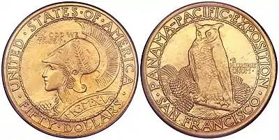 5. "1915 Panama Pacific Exposition $50 Gold Coin Commemorative Coin". 4 September 2010. Archived from the original on 2019-06-07. Retrieved 2019-06-06.