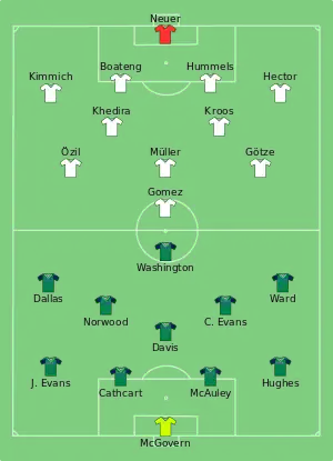- 1 2 "Tactical Line-ups – Northern Ireland v Germany" (PDF). UEFA.com. Union of European Football Associations. 21 June 2016. Retrieved 21 June 2016.