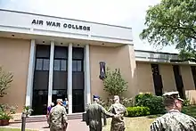 The Air War College (AWC) is the senior Professional Military Education (PME) school of the U.S. Air Force. A part of the United States Air Force's Air University, AWC emphasizes the employment of air, space, and cyberspace in joint operations.[1] Headquartered at Maxwell Air Force Base in Montgomery, Alabama, its higher headquarters is the Air Education and Training Command (AETC) at Randolph Air Force Base in San Antonio, Texas.[2] It is one of six war colleges within the U.S. Department of Defense's Joint Professional Military Education (JPME) Phase II Education Program for commissioned officers.[3]