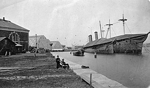 The USS Ammonoosuc (later renamed USS Iowa) was a steam frigate laid down by the Boston Navy Yard during the American Civil War and was launched, apparently without ceremony, on 21 July 1864. She was intended to be used against the British should England decide to take the side of the Confederate States of America and attack the Northern part of the United States. However, as the war progressed, England's support of the Confederacy diminished, and the fast and powerful Ammonoosuc was never placed into service.