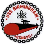 USS Birmingham (SSN-695), a Los Angeles-class submarine, was the third ship of the United States Navy to be named for Birmingham, Alabama. The contract to build her was awarded to Newport News Shipbuilding and Dry Dock Company in Newport News, Virginia on 24 January 1972 and her keel was laid down on 26 April 1975. She was launched on 29 October 1977 sponsored by Mrs. Maryon Pittman Allen, wife of Senator James Allen, and commissioned on 16 December 1978.
