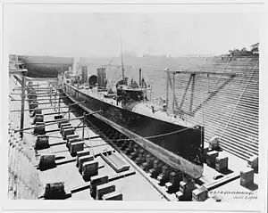 ![]() USS Goldsborough (TB-20), in drydock, 6 June 1900. | |