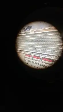 The attack periscope aboard the Growler still functions. Here, it's sighted the cruise ship Norwegian Bliss, docked next to it in New York City.