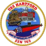 USS Hartford (SSN-768), a Los Angeles-class submarine, is the second ship of the Navy to be named for Hartford, Connecticut. The contract to build her was awarded to the Electric Boat Division of General Dynamics Corporation in Groton, Connecticut on 30 June 1988 and her keel was laid down on 22 February 1992. She was launched on 4 December 1993 sponsored by Laura O'Keefe, wife of former Secretary of the Navy Sean O'Keefe, and commissioned on 10 December 1994, with Commander George Kasten in command.
