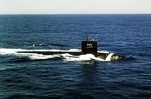 ![]() USS Hawkbill (SSN-666) off Southern California on 1 February 1991 | |