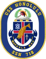 USS Honolulu (SSN-718), was a Los Angeles-class submarine, and the third ship of the United States Navy to be named for Honolulu, Hawaii. The contract to build her was awarded to Newport News Shipbuilding and Dry Dock Company in Newport News, Virginia on 15 September 1977 and her keel was laid down on 10 November 1981. She was launched on 24 September 1983 sponsored by Mrs. Joan B. Clark, and commissioned on 6 July 1985, with Commander Robert M. Mitchell in command.