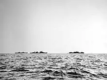 Houston and Perth reached Tanjong Priok on 28 February, where they attempted to resupply, but were met with fuel shortages and no available ammunition.[15] The two cruisers were ordered to sail to Tjilatjap with Dutch destroyer Evertsen, but departed at 17:00 without Evertsen, which was delayed.[16] The Allies believed that Sunda Strait was free of enemy vessels, with the last intelligence reports indicating that Japanese warships were no closer than 50 miles (43 nmi; 80 km), but a large Japanese force had assembled at Bantam Bay.[17][16][18] At 23:06, the two cruisers were off St. Nicholas Point when lookouts on Perth sighted an unidentified ship; when it was realized that she was a Japanese destroyer, Perth engaged.[17][16] However, as this happened, multiple Japanese warships appeared and surrounded the two Allied ships.[17][16]