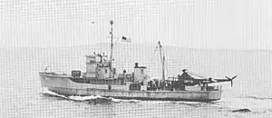 | Armament | one 3 in (76 mm) gun mount, two 20 mm machine guns, two depth charge racks, two depth charge tracks |