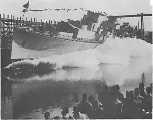 ![]() USS Key West (PF-17) being launched sideways in 1943 | |