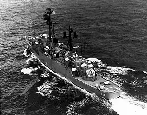 Kretchmer continued picket and training operations in the Atlantic until 21 May 1965, when she entered Boston Naval Shipyard for overhaul prior to deployment in the western Pacific. The ship departed Newport, Rhode Island, for Guam, arriving in Agana, Guam, Mariana Islands on 2 August 1965 after a stopover at Pearl Harbor.[1]