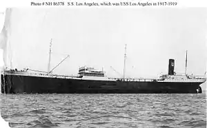 A damaged photograph of SS Los Angeles in 1916 or 1917, prior to its U.S. Navy service.