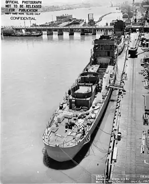 USS Martin (DE-30) fitting out at Mare Island Naval Shipyard on 2 July 1943