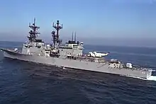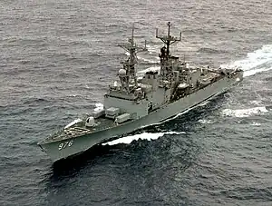 USS Merrill (DD-976), named for Rear Admiral Aaron Stanton Merrill USN (18901961), was a Spruance-class destroyer that entered service with the United States Navy in 1978. Merrill served as the US Navy's test platform for the Tomahawk cruise missile. In the 1980s, the destroyer took part in Operation Earnest Will in the Persian Gulf during heightened tensions with Iran. The destroyer was decommissioned in 1998. The vessel was used as a target ship in 2003 and sunk off Hawaii in 2003.