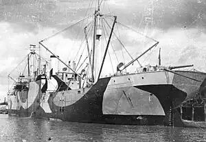 ![]() SS Munaires in a photograph possibly taken on 7 January 1918 at the time of her inspection for possible naval service by the 5th Naval District. | |