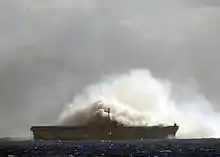 In 2006, the ship was relocated to Pearl Harbor to be prepared for a 'SINKEX'. In February 2008, New Orleans was listed for scrapping, instead of sinking,[7] however, as of June 2010, New Orleans was once again scheduled to be sunk. Finally, New Orleans was sunk on 10 July 2010 during the RIMPAC 2010 exercise. The ship first sustained direct hits by at least seven Harpoon missiles. After the Harpoon strikes, B-52s from 2d Bomb Wing and 5th Bomb Wing dropped five 2000-pound GBU-10 precision bombs. As the ship began to list, a joint force of the five participating nations – United States, Japan, Australia, Canada and France – struck the ship with the majority hitting above the water line.[8]