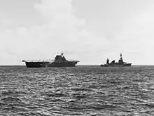 In mid-August, Northampton sailed for the Southwest Pacific to join in the Guadalcanal operation. She patrolled southeast of San Cristobal, where on 15 September her force was attacked by submarines, which sank Wasp and damaged North Carolina, and another torpedo hit badly damaged O'Brien only 800 yd (730 m) off Northampton's port beam. Now sailing with Hornet, Northampton screened the carrier during attacks on Bougainville Island on 5 October.[5]