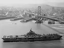 In March 1957, she sailed for the western Pacific on a sixth tour to the area with the HSS-1s and S2Fs of VS-21, VS-23, and VS-37.[43] She was there for two months before returning to San Diego and resuming training missions off the west coast in summer 1957. In November 1957, she found some debris of Pan Am Flight 7, an airline flight that disappeared en route to Hawaii. In January 1958, she steamed west on her last 7th Fleet deployment. Remaining six months, she returned to San Diego on 15 July and commenced inactivation.[45] She was decommissioned 28 December 1958[46] and berthed with the United States Reserve Fleet at Long Beach, California. She was redesignated AVT-11, an auxiliary aircraft transport and landing training ship, on 15 May 1959. After 10 years docked at the reserve fleet, she was struck from the Naval Vessel Registry on 1 December 1969[9] and sold for scrapping on 23 March 1971[46] to Zidell Explorations Corporation in Portland, Oregon.[45]