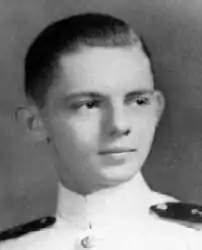 Robert Graham Bradley was born in Washington, D.C., on 26 September 1921. He was appointed to the United States Naval Academy on 9 June 1939, and graduated on 19 June 1942. He completed instruction at the Atlantic Subordinate Command, Service Force, Norfolk, Va. (3 July – 27 October 1942), and on 29 October reported to New York Shipbuilding Corporation, Camden, New Jersey, for the fitting out of small aircraft carrier USS Princeton (CVL-23). He served as a member of the ship's company when Princeton was commissioned on 25 February 1943, and while on board received promotions to lieutenant, junior grade and lieutenant (1 May 1943 and 1 July 1944, respectively), as she took part in operations ranging from the occupation of Baker Island (September 1943) to the Battle of Leyte Gulf (October 1944).[2]
