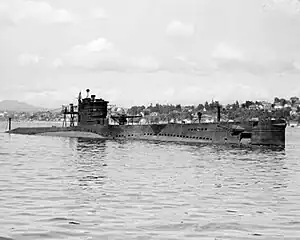 USS S-28 at Puget Sound Navy Yard, Bremerton, Washington, on 24 June 1943 after a refit.
