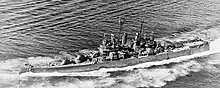 Santa Fe was laid down at the New York Shipbuilding Co. at Camden, New Jersey, on 7 June 1941. She was launched of 10 June 1942, and after completing fitting out, she was commissioned on 24 November. Captain Russell S. Berkey served as the ship's first commanding officer. She thereafter conducted her shakedown cruise and initial training off the East Coast of the United States into early 1943, before sailing for the Pacific Ocean, where she joined the forces engaged in the Pacific Theater of World War II. She arrived in Pearl Harbor, Hawaii, on 22 March and proceeded from there to the Aleutian Islands. She arrived in Alaskan waters on 20 April, and six days later she took part in a bombardment of Japanese-held Attu Island. She participated in patrols off the Aleutians for the next four months during the Aleutian Islands campaign, and she shelled Kiska on 6 and 22 July before American forces landed on the island the following month. She provided gunfire support to the forces that went ashore there on 15 August. Ten days later, Santa Fe left the area and arrived back in Pearl Harbor on 1 September.[3]
