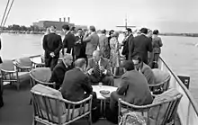 During October 1962, President Kennedy held strategy meetings on Sequoia to discuss the Cuban Missile Crisis.[25] On May 29, 1963, the Kennedys hosted a cruise to celebrate the President's 46th and final birthday. At 8 pm, the couple boarded Sequoia to the music of two orchestras. With 25 friends and family, the President and his guests danced after a meal of roast filet and Dom Perignon.[26][27] In the words of Clement Norton, a close Kennedy family friend who was aboard that night, “You never can imagine anything happier or more normal or nice.”[28] The iconic photographs documenting the President's last birthday were not taken by an official White House photographer, but by the navy officer in charge of Sequoia using his own Kodak Instamatic camera.