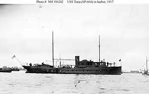 ![]() USS Tuna (SP-664) in a harbor in the northeastern United States in 1917. | |